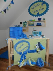 Der große Tisch lädt zum gemeinsamen Frühstück und Mittag essen ein. Im Kochbereich können die kleinen am Kinderherd kochen und backen.
